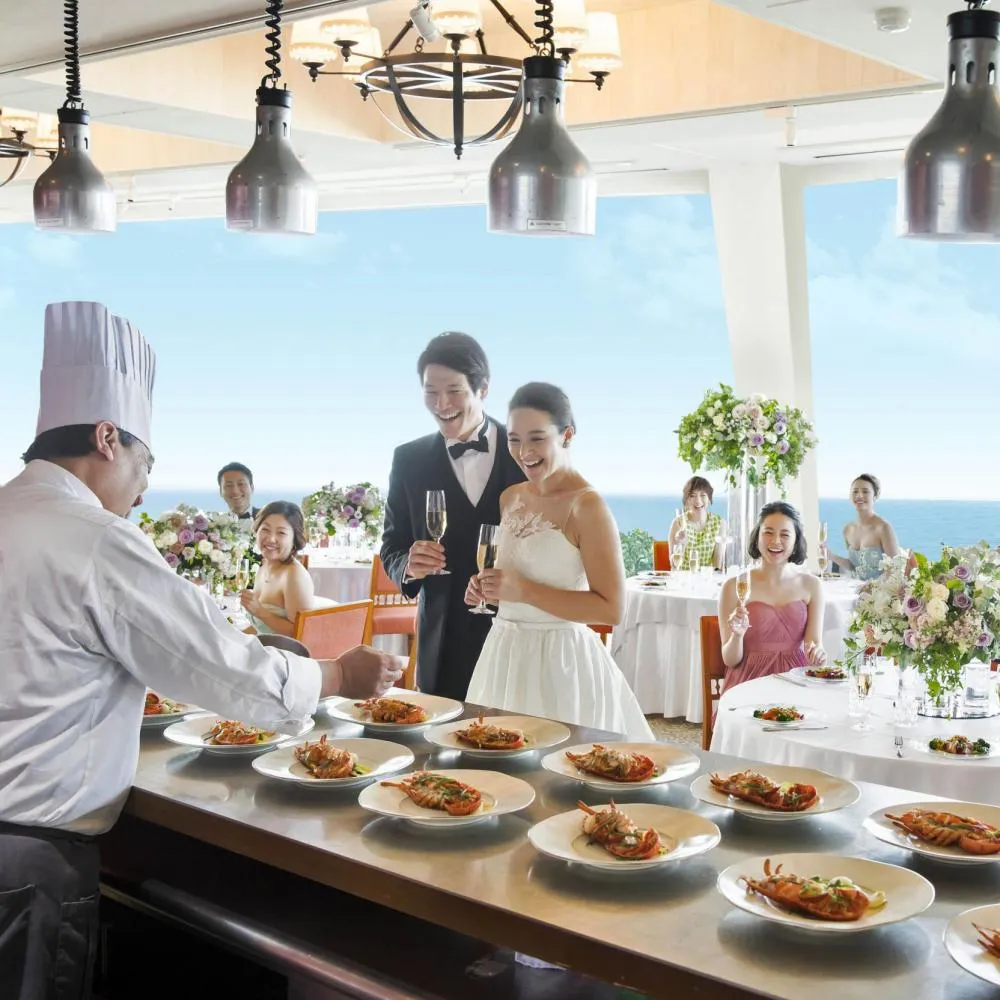 【オープン限定特典◆無料試食&「海が見えるチャペル」の見学&ドレス20万円特典付】大人気の海老やフォアグラを使った婚礼コース試食体験!《今月中のフェアご予約で》最大90万円の早割特典&系列ホテル&レストランの総額1万円相当チケット付!会場紹介や見積相談など丁寧にご案内します
